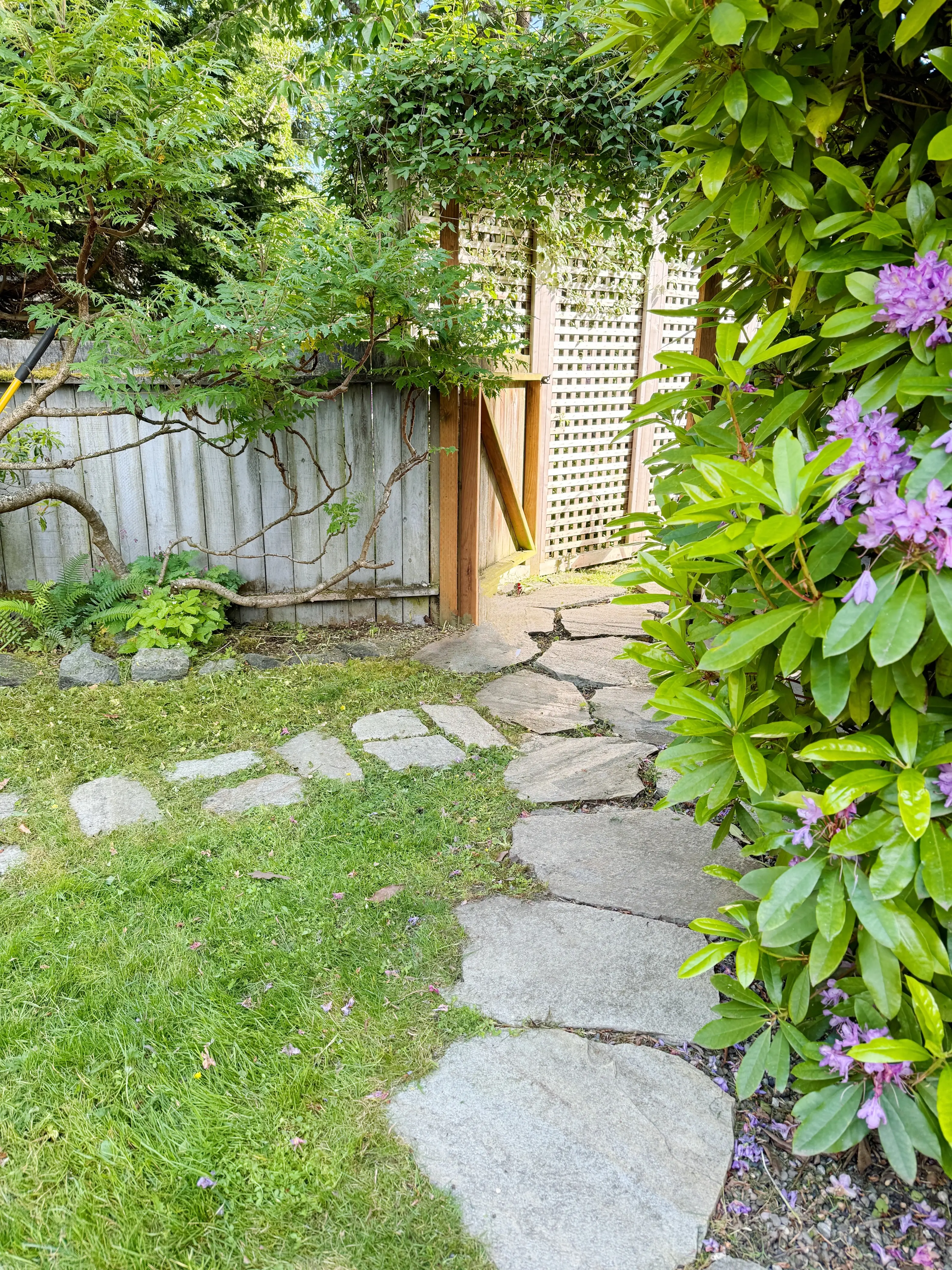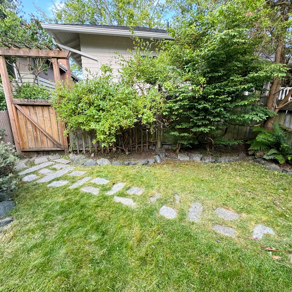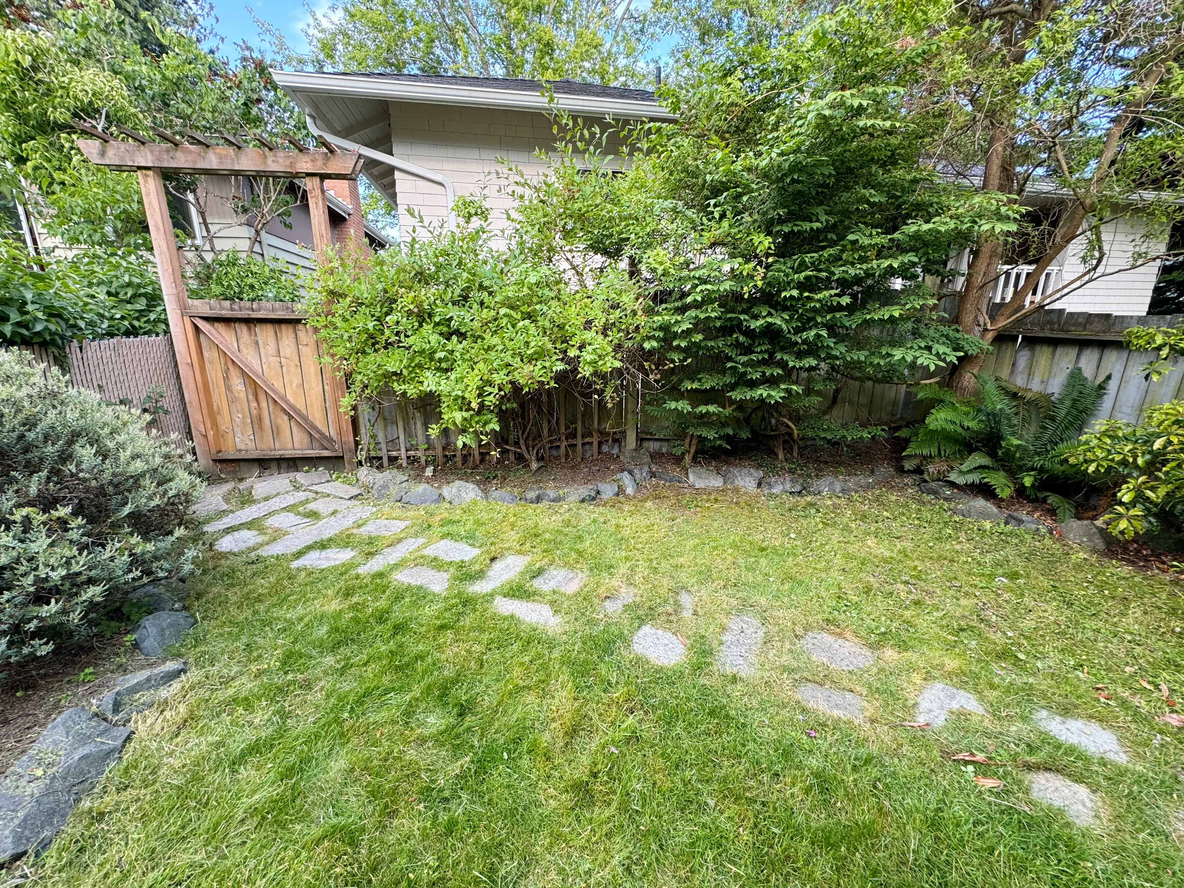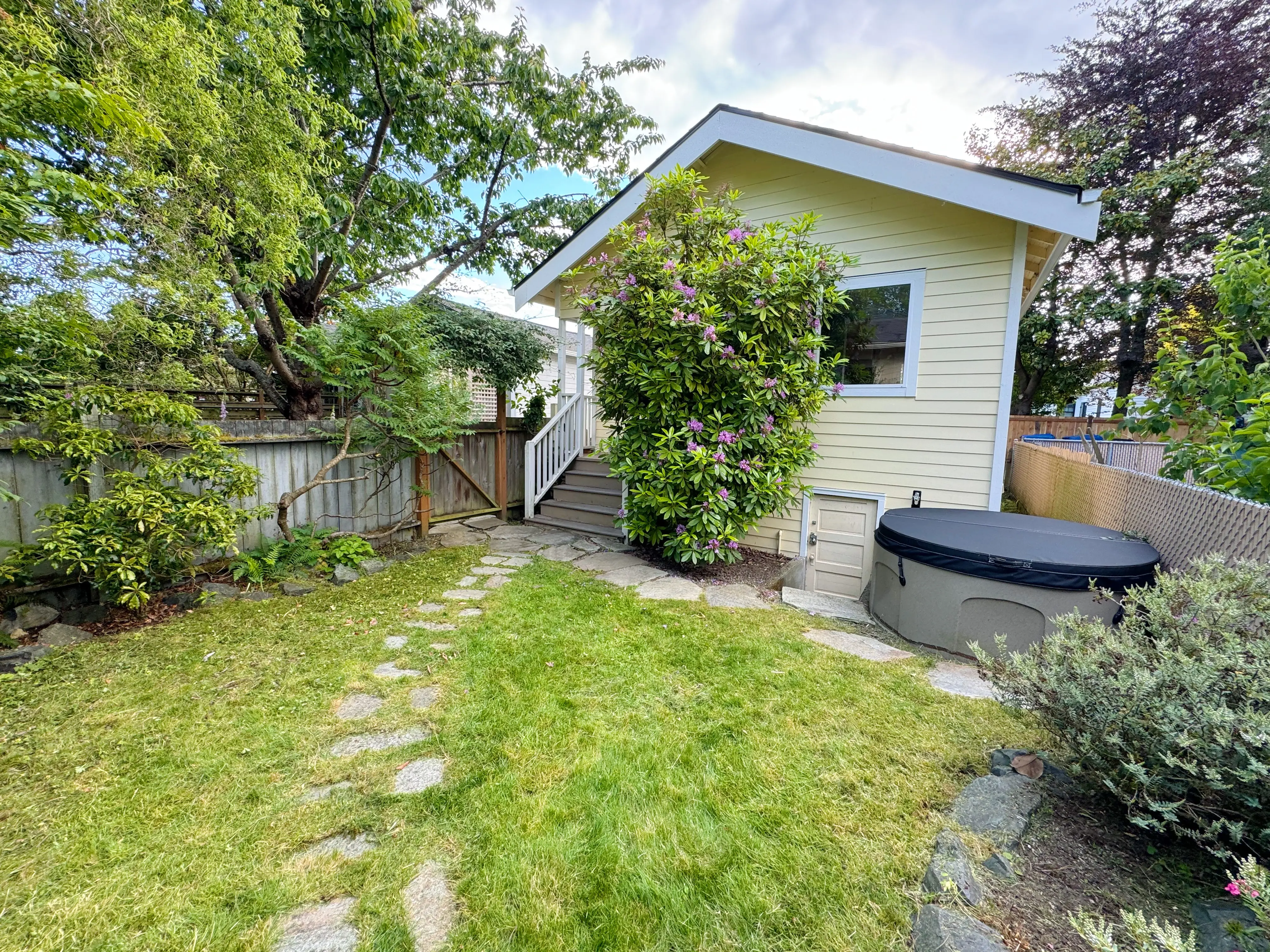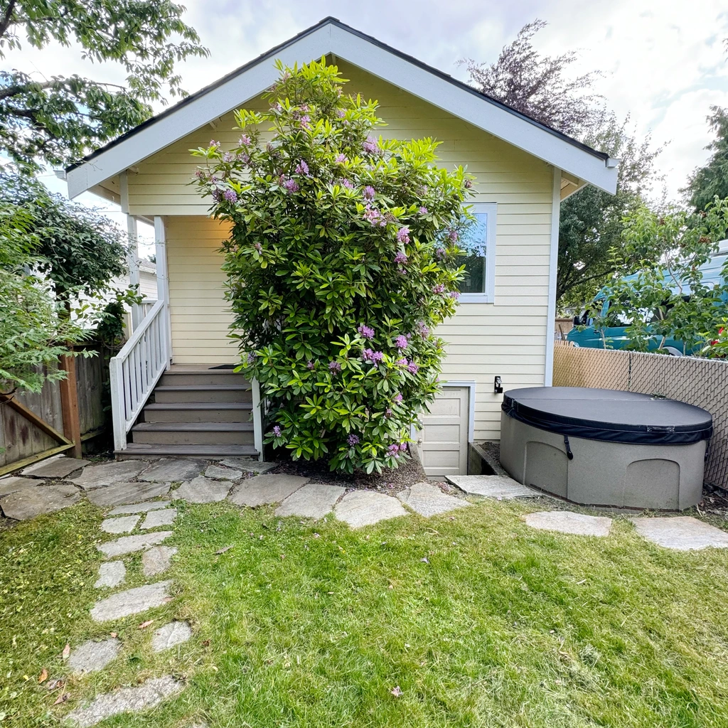 Enjoy the HOT TUB with views of the garden! The yard is fully fenced with honeysuckle flowers, rhododendrons, and curly willow. Parking is located directly next to the home, making it easy for unloading groceries!