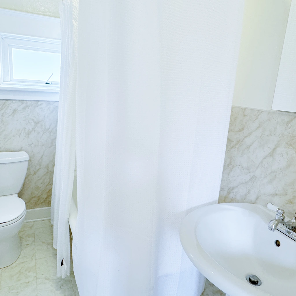 The bathroom hosts a clawfoot soaking tub with shower and upgraded bathroom sink faucet.